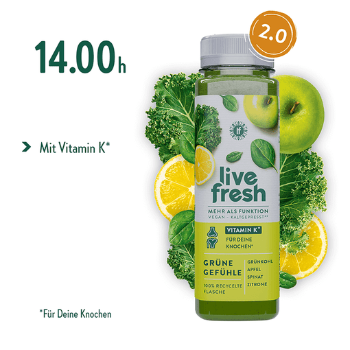 Apfelsaft(69%), Spinatsaft(15%) Grünkohlsaft(12%), Zitronensaft(